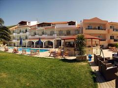 природа, спокойная атмосфера, хороший сервис. Отличный выбор для семейного отдыха. Расположен в пос. Скала Рахони, в 10 км от порта Лименас и в 3 км
