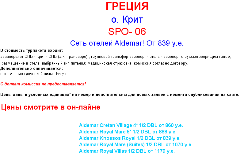 17 Июн 2013 10:57:19 ГРЕЦИЯ Крит сеть отелей Aldemar в ИЮЛЕ от фирмы ЮЖНЫЙ КРЕСТ