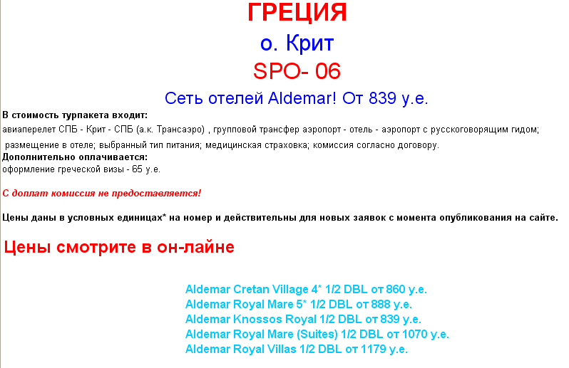 19 Июн 2013 11:17:48 ГРЕЦИЯ Крит отели Aldemar в ИЮЛЕ от фирмы ЮЖНЫЙ КРЕСТ