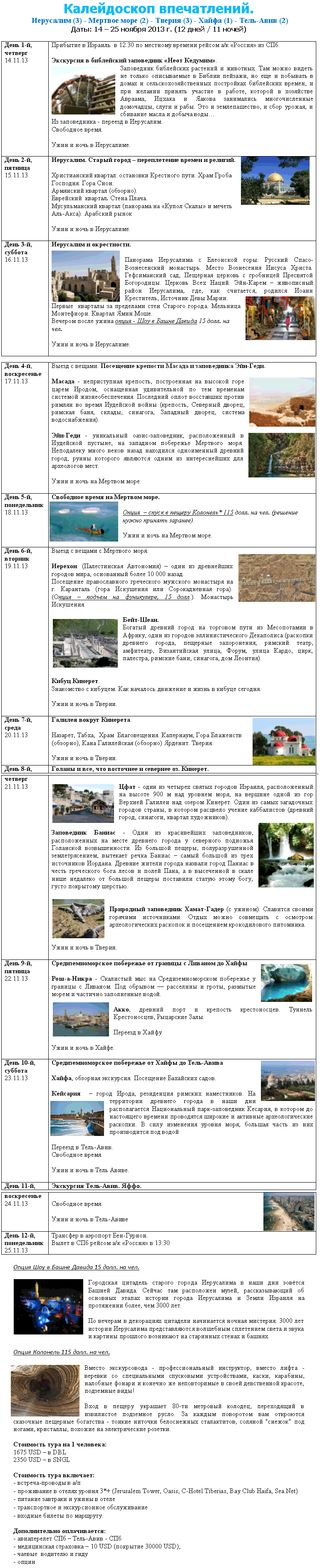 20 Июн 2013 19:51:52 ИЗРАИЛЬ 14.11-25.11 "Калейдоскоп впечатлений" экскур. тур за $1675 от фирмы РОССИТА