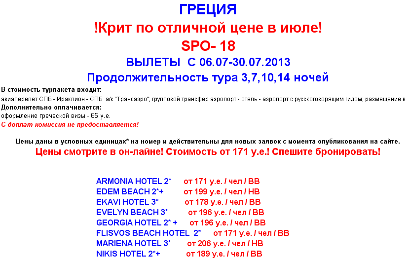 03 Июл 2013 12:10:35 ГРЕЦИЯ Крит 06.07 и 09.07 от 174 у.е. от фирмы ЮЖНЫЙ КРЕСТ