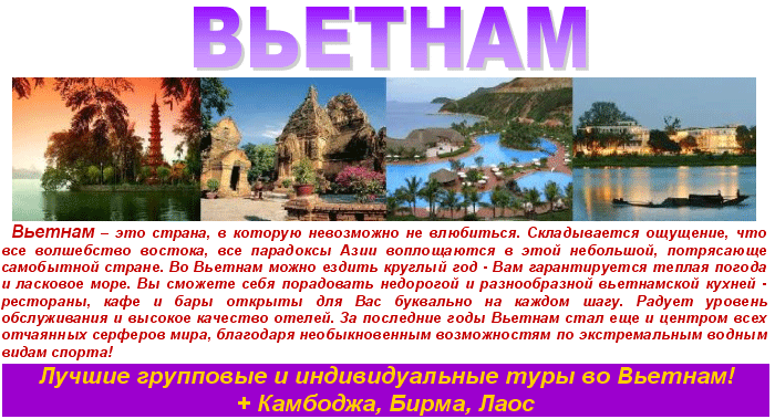 04 Июл 2013 16:58:06 ВЬЕТНАМ + Камбоджа, Мьянма (Бирма), Лаос от фирмы КОНКОРД ТРЕВЕЛ