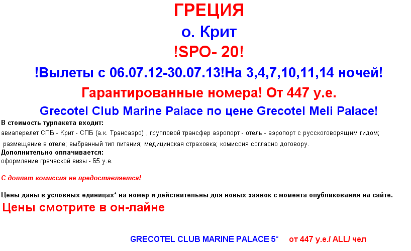08 Июл 2013 11:24:12 ГРЕЦИЯ Крит отель Grecotel Club Marine Palace от 447 у.е. от фирмы ЮЖНЫЙ КРЕСТ