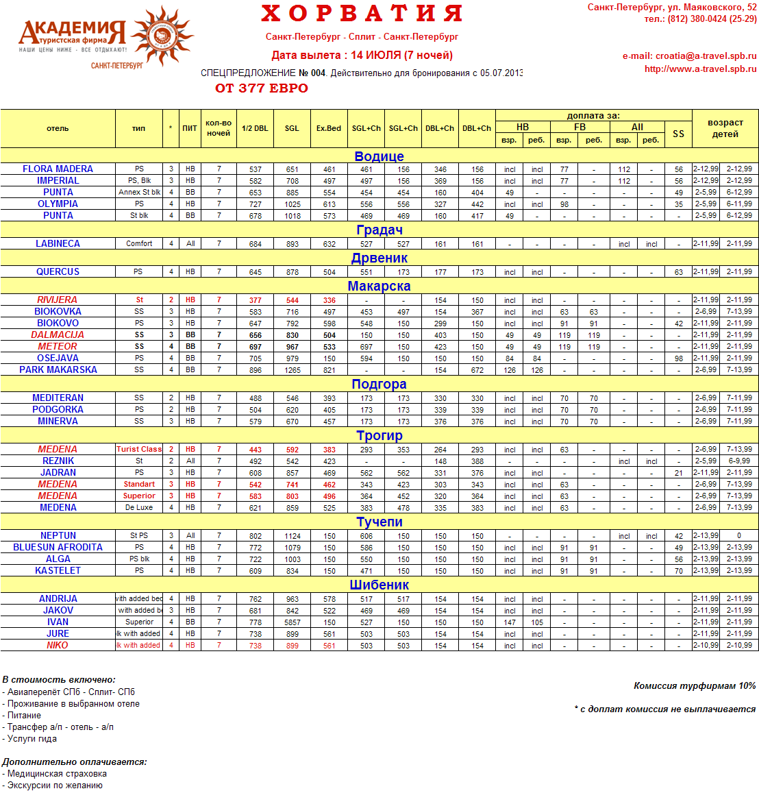 11 Июл 2013 13:55:27 ХОРВАТИЯ 14.07 Отдых в Средней Далмации от 380 евро от фирмы АКАДЕМИЯ