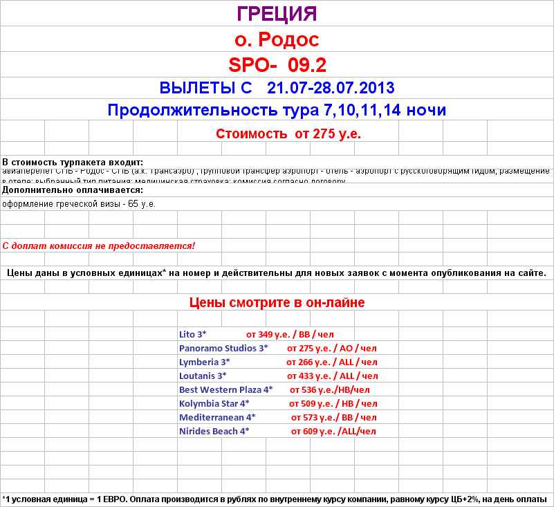 16 Июл 2013 12:04:43 ГРЕЦИЯ. Родос 21.07.13 от 275 у.е. от фирмы ЮЖНЫЙ КРЕСТ
