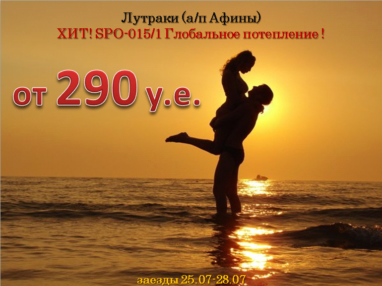 17 Июл 2013 12:58:27 ГРЕЦИЯ Лутраки. (а/п Афины) заезды 25.07-28.07 от 290 у.е. "Глобальное потепление" от фирмы СОЛВЕКС