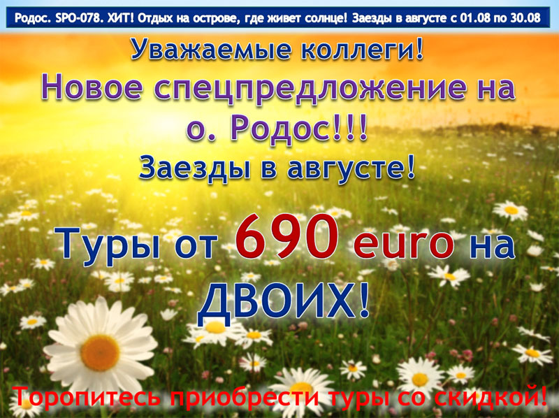 17 Июл 2013 13:26:54 ГРЕЦИЯ Родос в августе от 690 евро на двоих от фирмы СОЛВЕКС