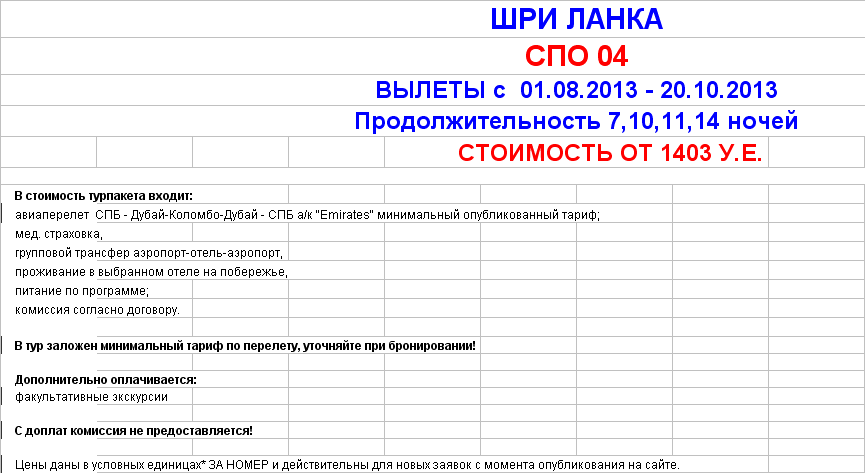 09 Авг 2013 11:50:00 ШРИ-ЛАНКА из СПБ от 1407 у.е. от фирмы ЮЖНЫЙ КРЕСТ