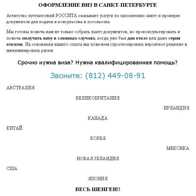 16 Авг 2013 12:33:40 ОФОРМЛЕНИЕ ВИЗ во ВСЕ страны мира от фирмы РОССИТА
