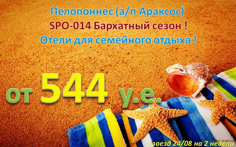 20 Авг 2013 20:12:38 ГРЕЦИЯ Пелопоннес (а/п Араксос) 24.08 на 2 нед. от 544 у.е. отели для семейного отдыха от фирмы СОЛВЕКС