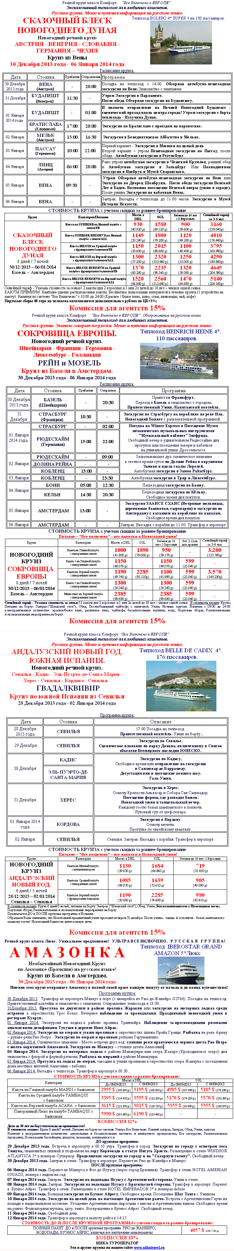 21 Авг 2013 01:04:19 КРУИЗЫ Речные на Новый Год - Дунай, Рейн, Гвадалквивир, Амазонка - с русскими группами от фирмы НИКА