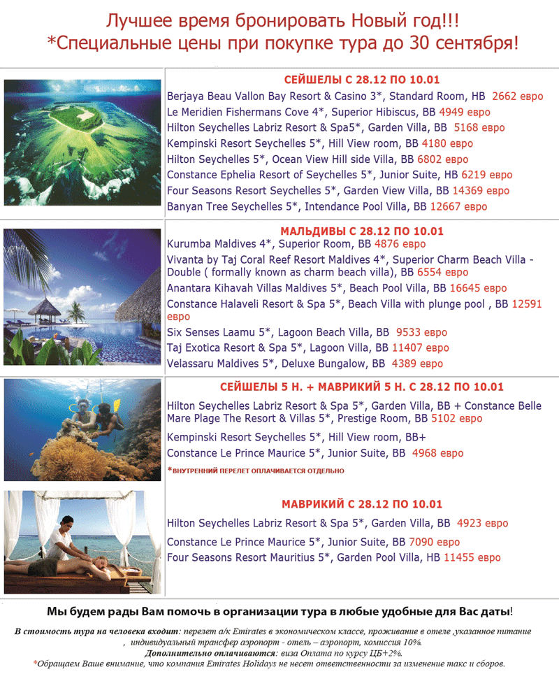 22 Авг 2013 20:16:00 ЭКЗОТИКА на Новый Год Сейшелы, Мальдивы, Маврикий от фирмы EMIRATES HOLIDAYS