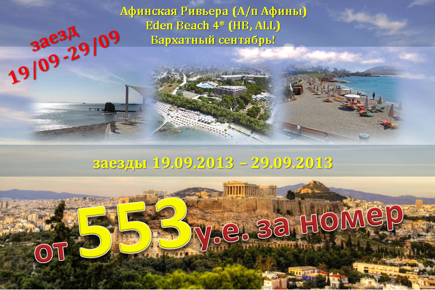 10 Сен 2013 17:03:09 ГРЕЦИЯ. Афинская Ривьера (А/п Афины) Eden Beach 4* (HB, ALL). Бархатный сентябрь19/09 -29/09 от фирмы СОЛВЕКС