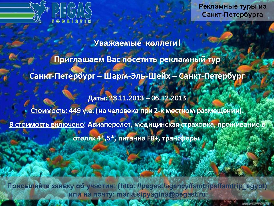 31 Окт 2013 11:57:33 ЕГИПЕТ. Рекламный тур в Шарм-эль-Шейх 28.11 - 06.12 от фирмы PEGAS
