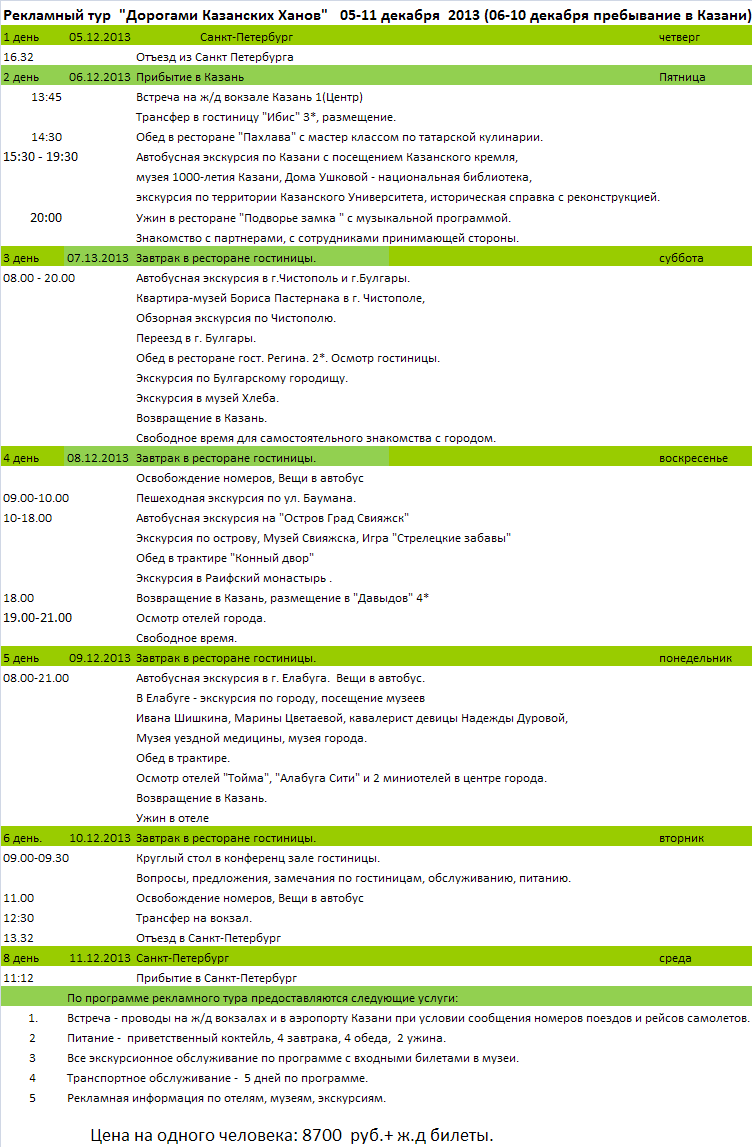 07 Ноя 2013 15:37:37 РОССИЯ. Казань 05.12-11.12 Рекламный тур "Дорогами Казанских Ханов" от фирмы АКВАТОРИЯ