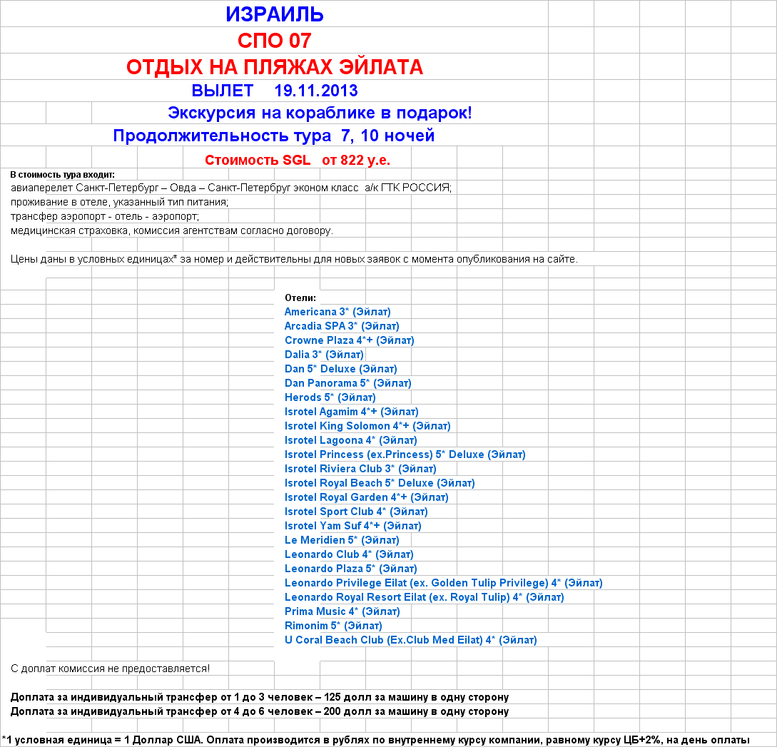 14 Ноя 2013 11:23:14 ИЗРАИЛЬ. Отдых в Эйлате 19.11.13 SGL на 7, 10 ночей от 822 у.е.+экскурсия в подарок от фирмы ЮЖНЫЙ КРЕСТ
