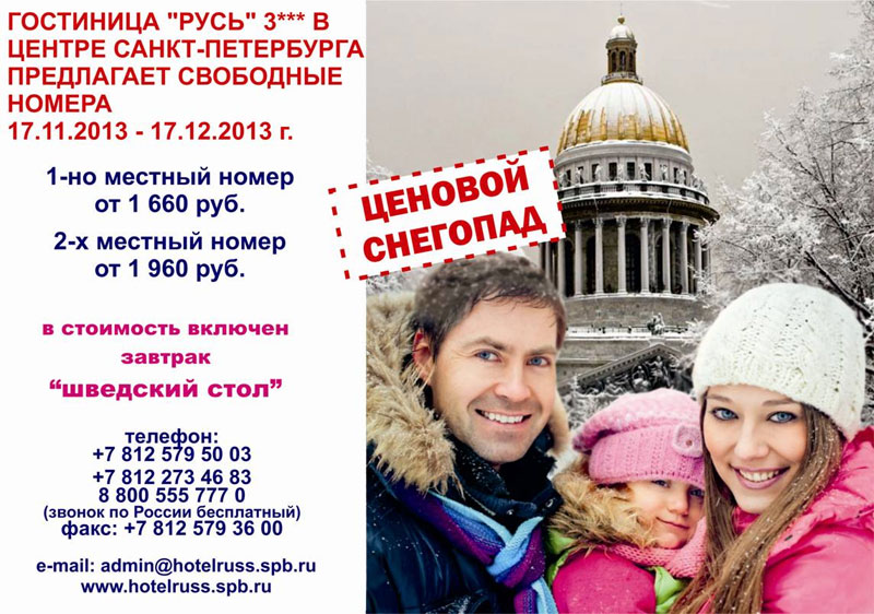 28 Ноя 2013 17:37:37 РОССИЯ Cанкт-Петербург - гост. РУСЬ 3* спо на размещение до 17.12.2013 от фирмы ГОСТИНИЦА РУСЬ