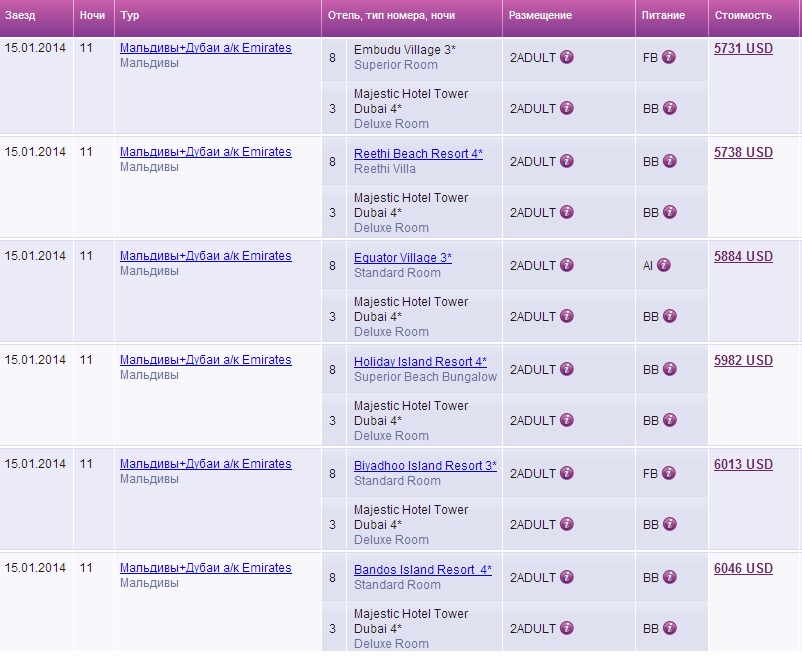 указанным питанием на Мальдивах , в ОАЭ отель Majestic