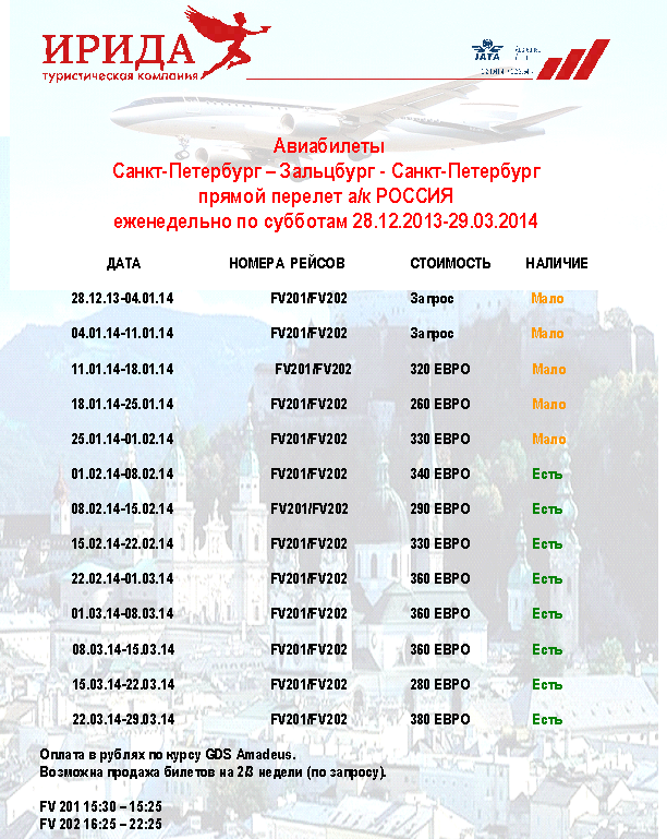09 Дек 2013 14:49:28 АВСТРИЯ - Авиабилеты СПб-Зальцбург-СПб от 260 Евро от фирмы ИРИДА