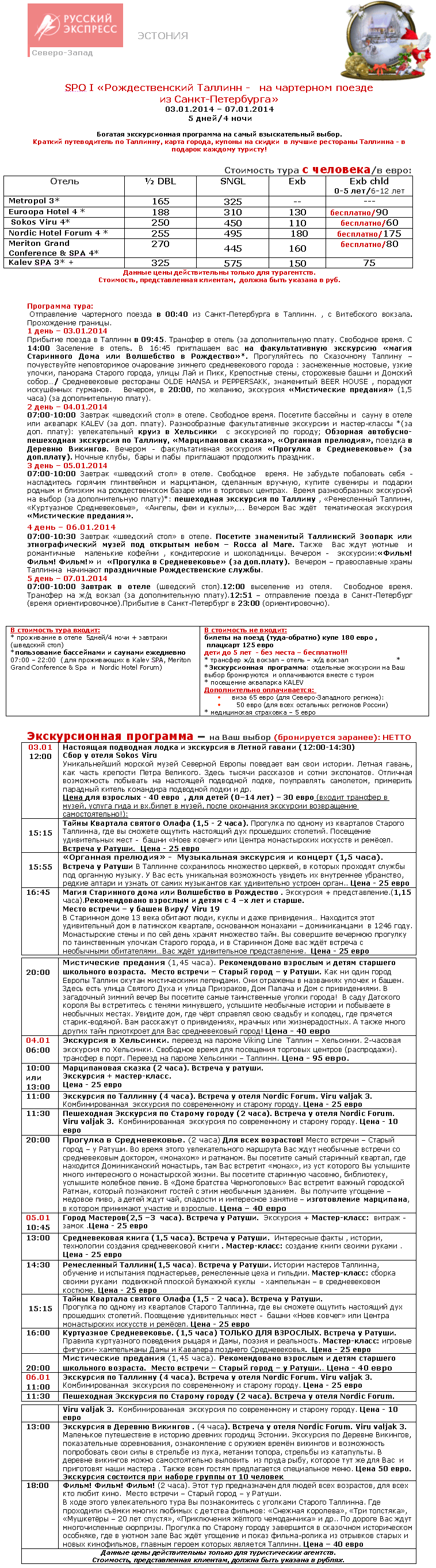 10 Дек 2013 16:14:46 ЭСТОНИЯ Таллин на Рождество 03.01-07.01 Чартерный поезд, гарант. места от фирмы РУССКИЙ ЭКСПРЕСС