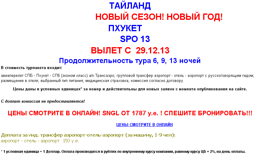 17 Дек 2013 13:12:02 ТАИЛАНД Пхукет на Новый Год 29.12 от 6н SNGL $1787 от фирмы ЮЖНЫЙ КРЕСТ