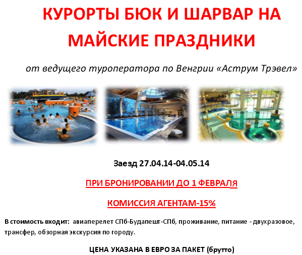 24 Дек 2013 15:03:55 ВЕНГРИЯ Бюк и Шарвар на МАЙСКИЕ праздники 27.04-04.05 от фирмы АСТРУМ ТРЭВЕЛ