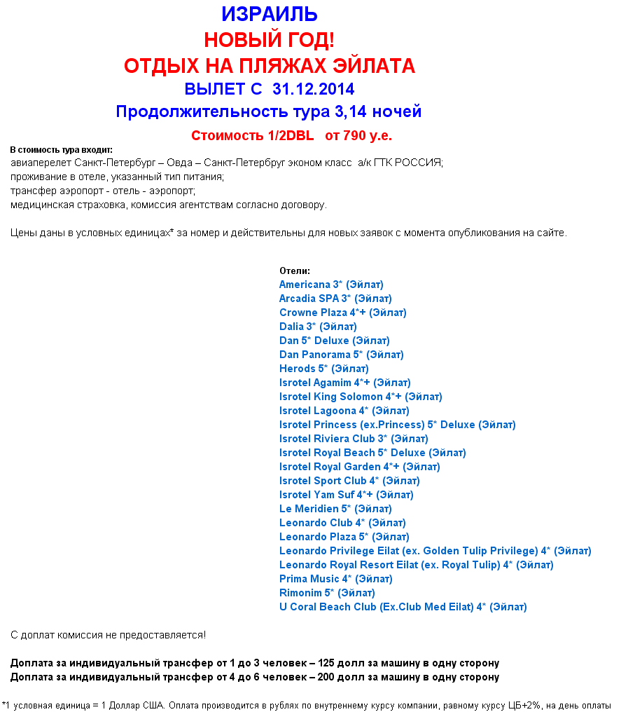 26 Дек 2013 15:56:21 ИЗРАИЛЬ Новый год в Эйлате 31.12 на 3н / 14н - от $790 от фирмы ЮЖНЫЙ КРЕСТ