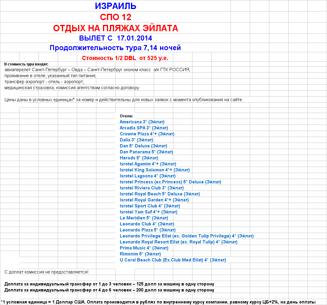 14 Янв 2014 11:48:47 ИЗРАИЛЬ. Отдых в Эйлате с 17.01.14 на 7, 14 ночей от 525 у.е. от фирмы ЮЖНЫЙ КРЕСТ