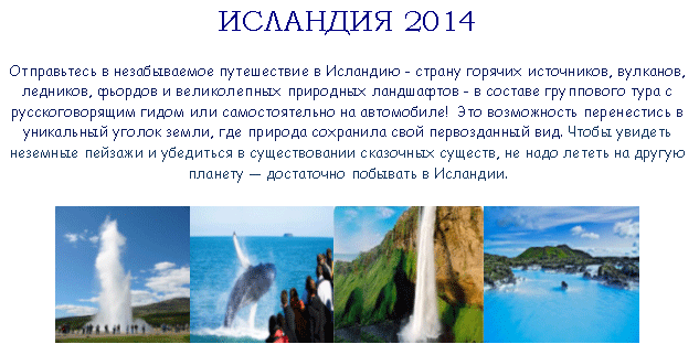 ИСЛАНДИЯ - сводка туров на майские, на лето от фирмы КОНКОРД ТРЕВЕЛ |