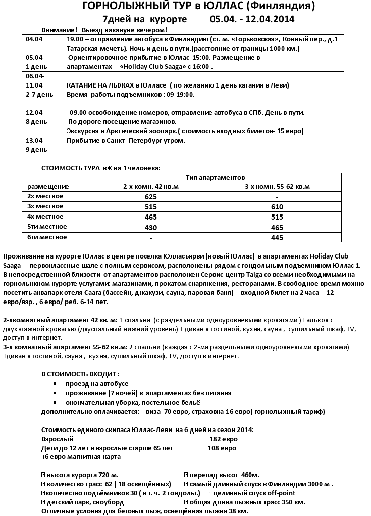 28 Янв 2014 12:36:24 ФИНЛЯНДИЯ Юллас 05.04-12.04 Горные Лыжи от фирмы АМАЗОНКА
