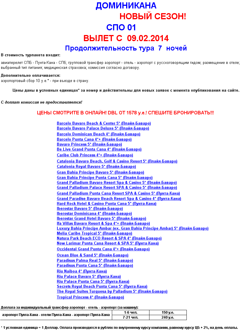 04 Фев 2014 16:19:59 ДОМИНИКАНА 09.02 на 7н от $1578 от фирмы ЮЖНЫЙ КРЕСТ