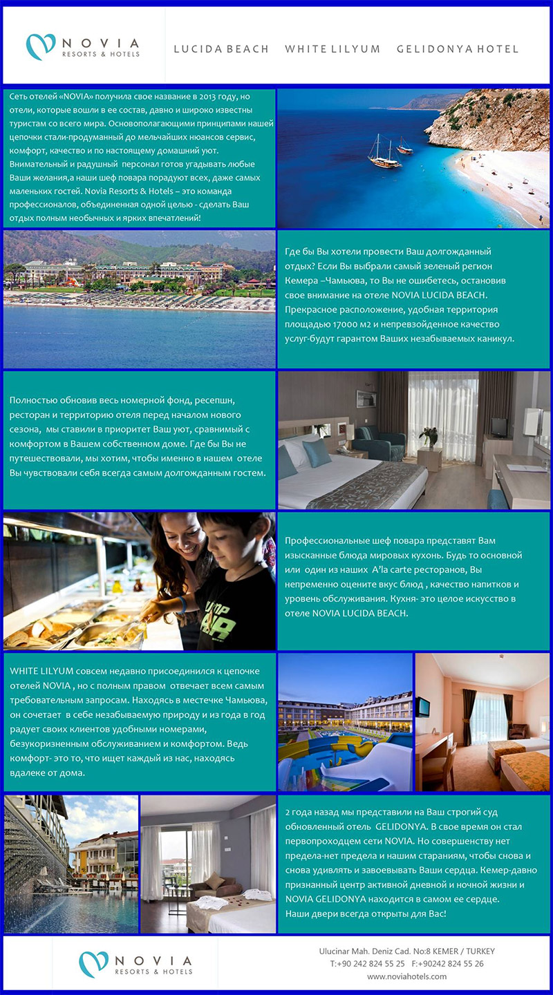 17 Фев 2014 14:00:23 ТУРЦИЯ Кемер cеть отелей Novia - Lucida Beach, White Lilyum, Gelidonya : приглашаем к сотрудничеству от фирмы NOVIA RESORTS AND HOTELS
