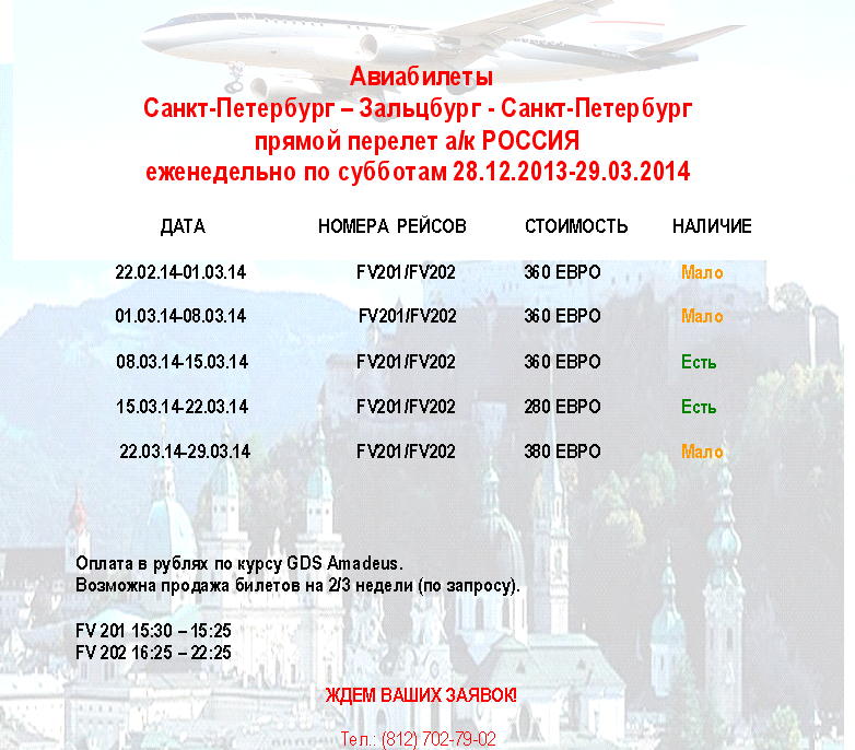17 Фев 2014 15:13:44 АВСТРИЯ - Авиабилеты СПб-Зальцбург-СПб февраль-март от 280 евро от фирмы ИРИДА