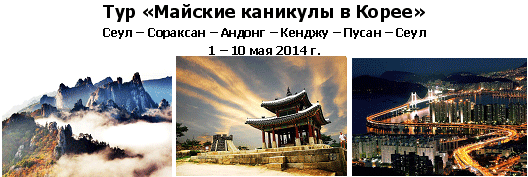 | 17 Фев 2014 | 16:07:02 | ЮЖНАЯ КОРЕЯ на Майские праздники 01.05-10.05 от фирмы РОССИТА |