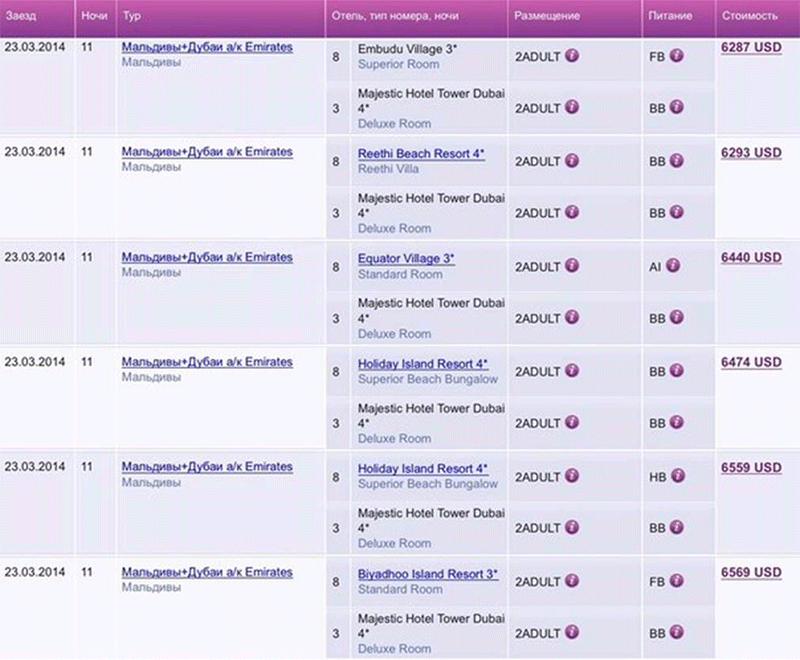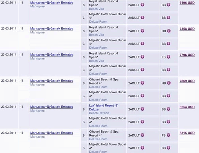 указанным питанием на Мальдивах , в ОАЭ отель Majestic